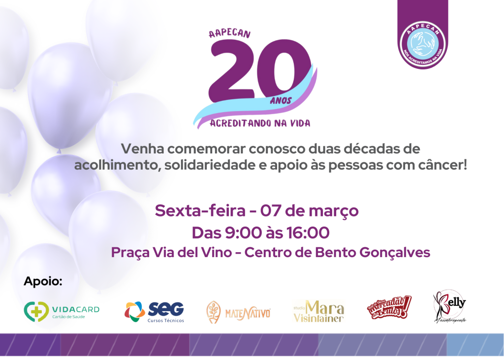 A Associação de Apoio a Pessoas com Câncer (Aapecan) de Bento Gonçalves está comemorando 20 anos…