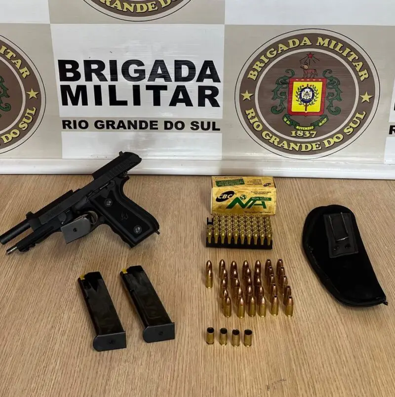 Brigada Militar prende homem no Bela Vista em Garibaldi com uma pistola 9mm. Homem havia atirado em veículo.