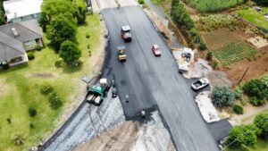Nesta segunda-feira (20), a Prefeitura de Garibaldi deu sequência a construção da nova ponte de Marcorama. Equipes da Secretaria de Obras realizaram a instalação da camada asfáltica CBUQ, de cinco centímetros. Essa espessura garantirá maior qualidade e durabilidade para o asfalto. A camada foi instalada sobre uma base e sub-base de materiais, que também reforçam a estrada.