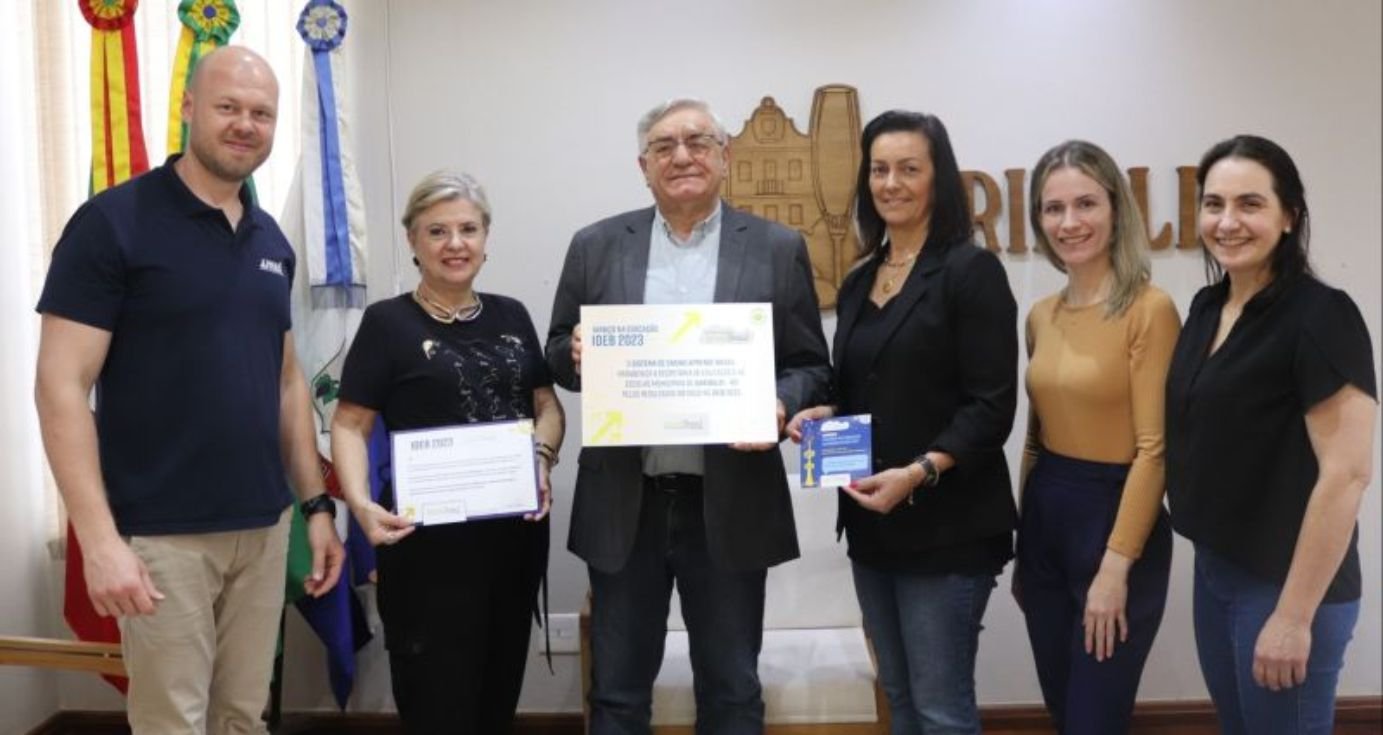 Nesta quarta-feira (6), Garibaldi recebeu uma distinção do Aprende Brasil pela nota de 6,6 pontos alcançada no Índice de Desenvolvimento da Educação Básica (Ideb) de 2023. O resultado representa um aumento no indicador, que se mantém acima da média nacional.