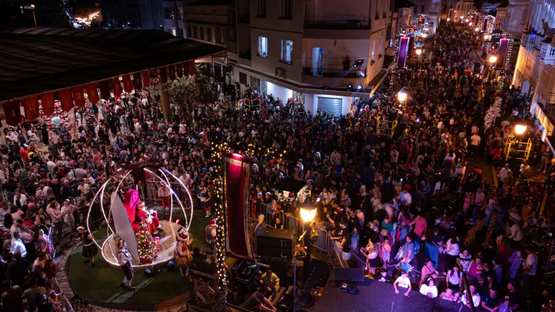 O ponto alto do final de semana foi à noite de sábado (30), quando cerca de sete mil pessoas lotaram a Rua Buarque de Macedo para acompanhar a tradicional e tão aguardada Chegada do Papai Noel. A emoção tomou conta do público, embalado pela Fanfarra Attílio Tosin, campeã nacional no 31º Campeonato Nacional de Bandas e Fanfarras, no Rio de Janeiro. As apresentações das bandas marciais Visconde de Cairu e Danilo Chesini trouxeram as clássicas marchas natalinas, criando uma atmosfera encantadora.