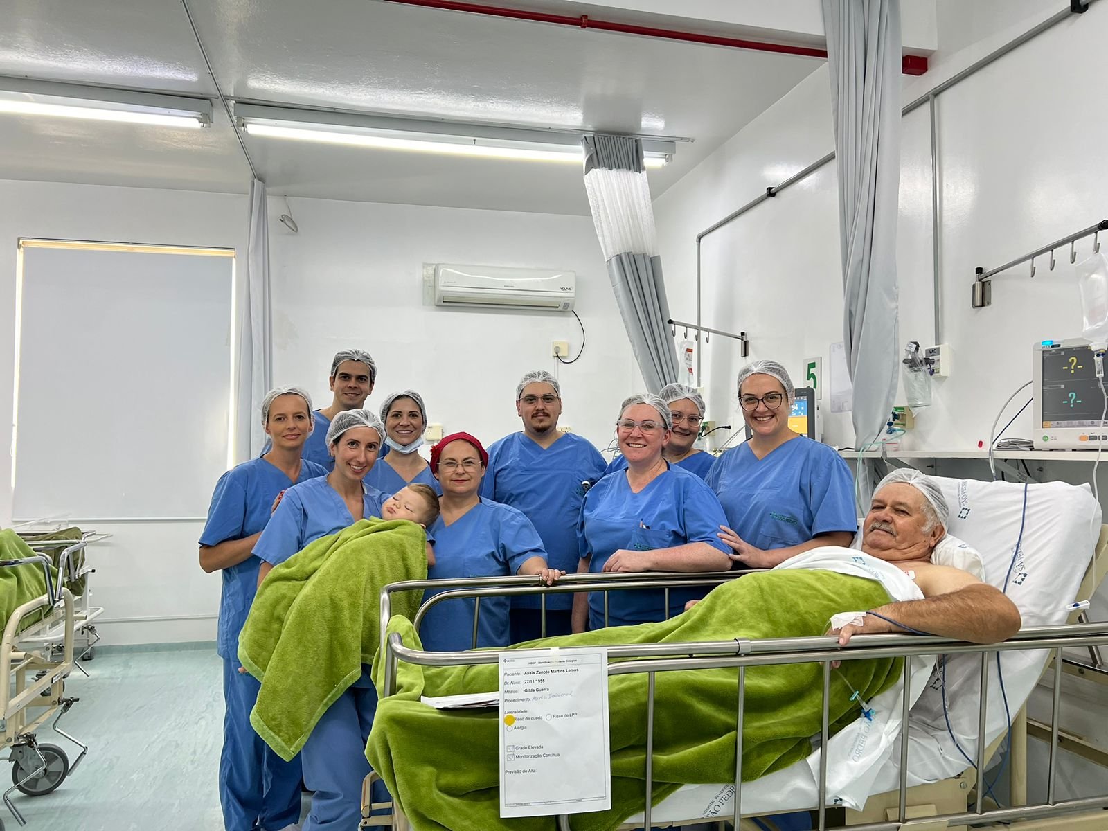 Visando ampliar o acesso aos procedimentos eletivos e reduzindo cada vez mais a fila de espera por cirurgias e procedimentos diagnósticos, o sábado foi de mobilização da nossa equipe assistencial. No Centro Cirúrgico, foram realizados 07 ( sete ) procedimentos via SUS, a maior parte deles relacionados à cirurgia Geral. Na foto, autorizada pelos pacientes e familiares, o pequeno Gabriel Favreto e o Sr. Assis Zanoto Martins Lemos foram submetidos ao procedimento de Hernioplastia, tendo como médicos assistentes os cirurgiões Luis Alberto Rosinato e Gilda Guerra.